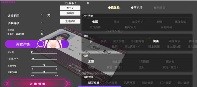 ・调教结束后会清除调教期间的记忆,调教环节终止。即使记忆被消除,随着身体逐渐被开发,对方的态度也会逐渐改变。