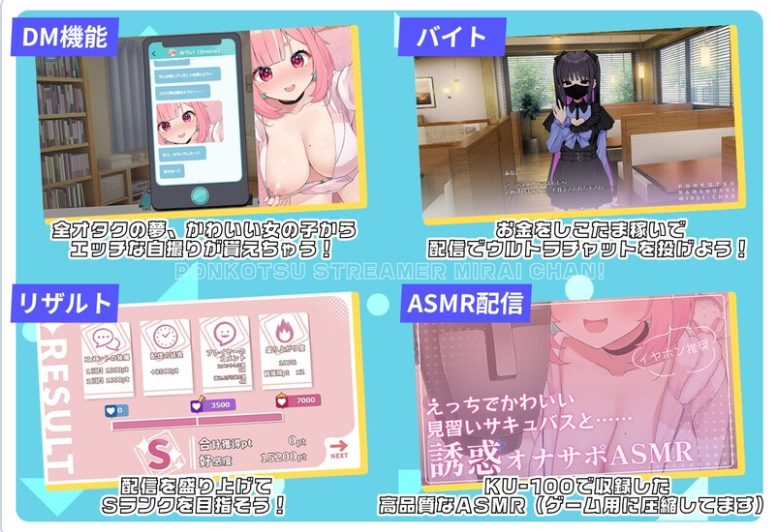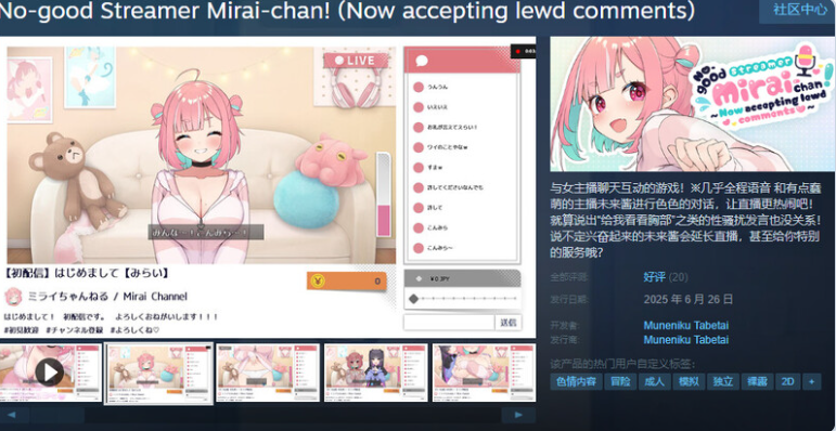 和有点蠢萌的女主播未来酱进行色色的互动,让直播更热闹吧!