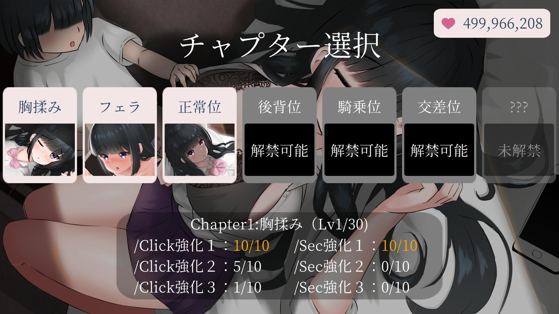 通过点击获得点数,可以解锁体位变化、服装更换等要素。