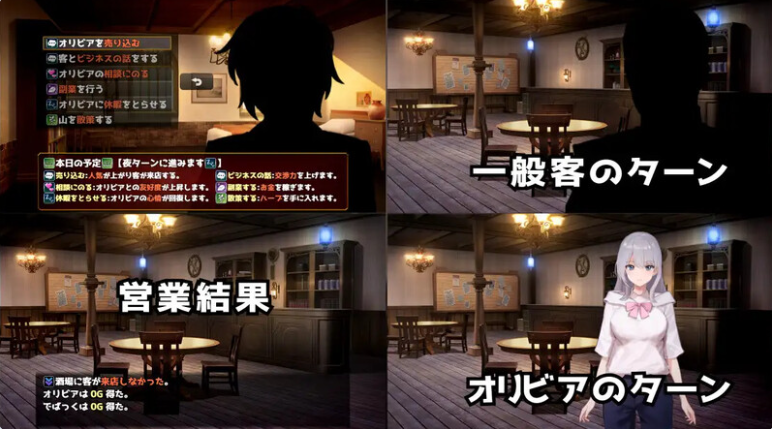 您作为玩家,将成为这家酒吧的老板兼经理,帮助奥莉维亚偿还债务。