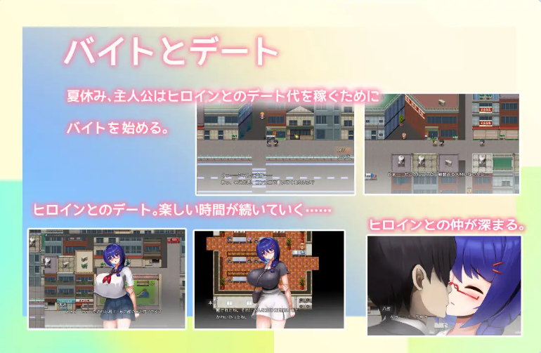 主人公通过打工赚钱,与本辻进行约会。游戏目的是在街上寻找兼职,邀请约会并选择正确的选项,提升本辻的好感度。然而暗地里大叔的寝取正在推进,一旦进入路线便无法停止。游戏搭载了寝取跳过功能,开启后仅保留主人公视角,可以在不见背后寝取场景的情况下推进游戏。
